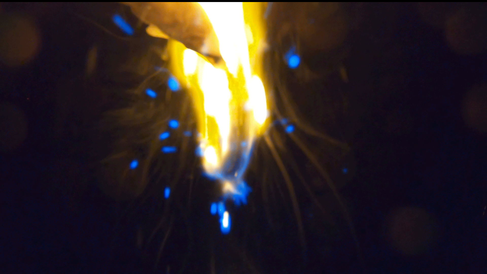 These sparks are not simple ejections of light and heat seem in a typical flame; they are seeds of plasma that exhibit lasing. In fact, the sparks display a two-phase cycle - which we label as plasma lasing. This process highlights a cyclic process of energy absorption and emission.